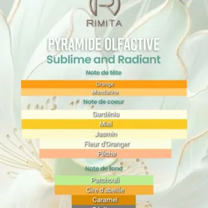 Puis, gardénia, jasmin, fleur d’oranger, miel et pêche s’entrelacent en une caresse fleurie et gourmande, comme un jardin d’orangers après la pluie.