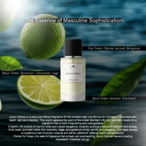 Azuro Intense : une fragrance masculine qui allie puissance et raffinement, pour ceux qui veulent laisser une empreinte inoubliable.