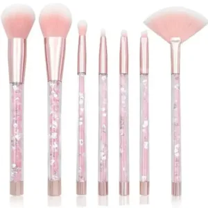 💎 Lot de 7 pinceaux de maquillage – Manches transparents à particules de diamant et paillettes en PVC